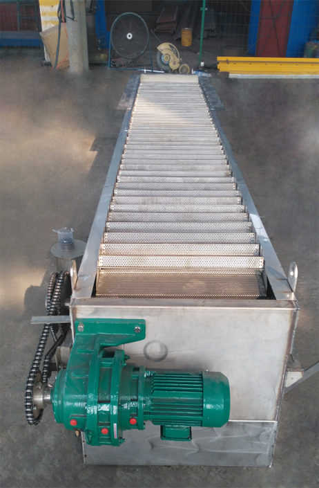 整個(gè)格柵部件直接安裝在渠道上,水中的固體物由網(wǎng)板串接成的濾帶捕獲,送至除污機(jī)驅(qū)動(dòng)裝置后部的較高位置后排出。同時(shí)一個(gè)旋轉(zhuǎn)的刷子還對(duì)網(wǎng)板進(jìn)一步清潔。